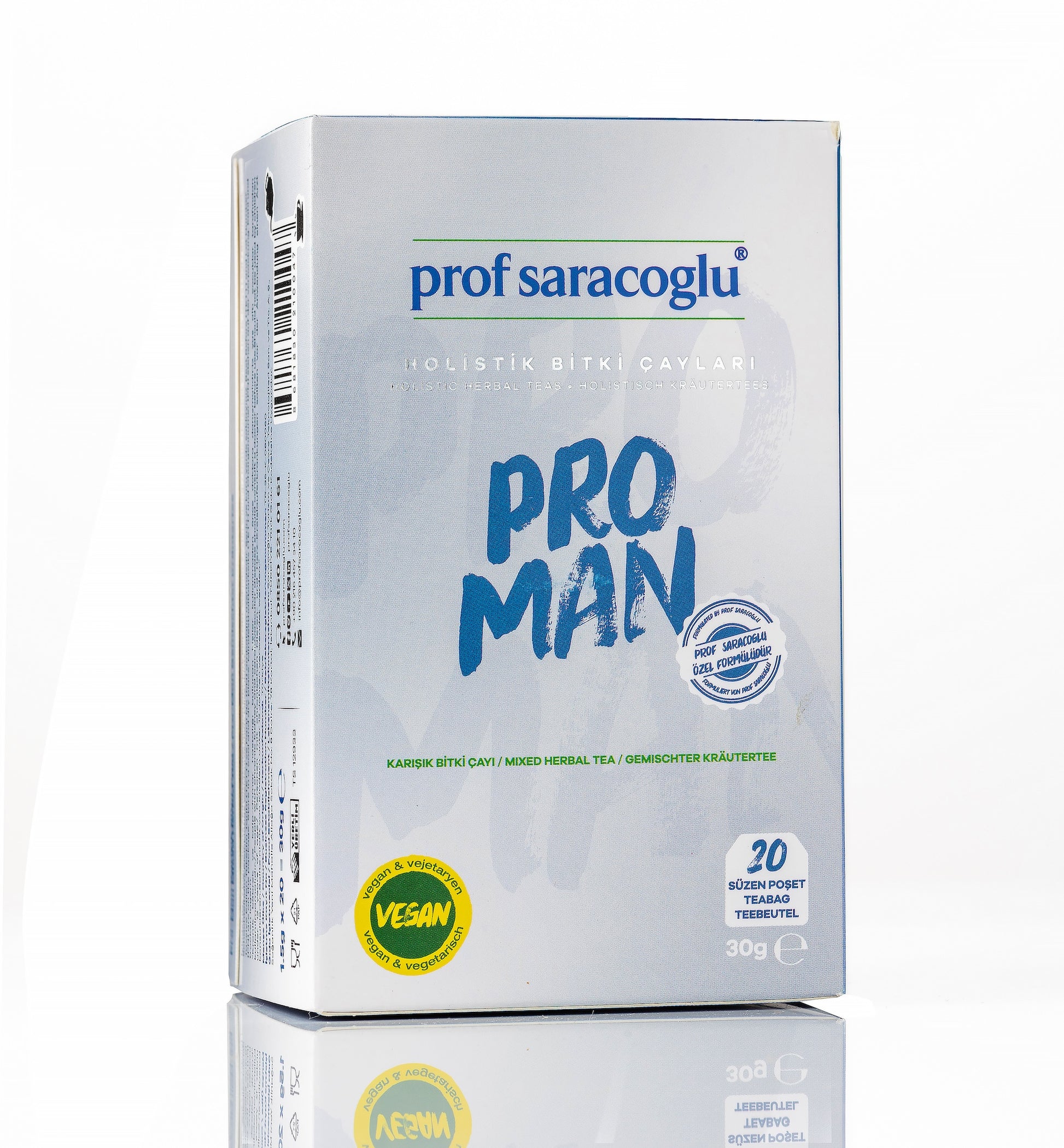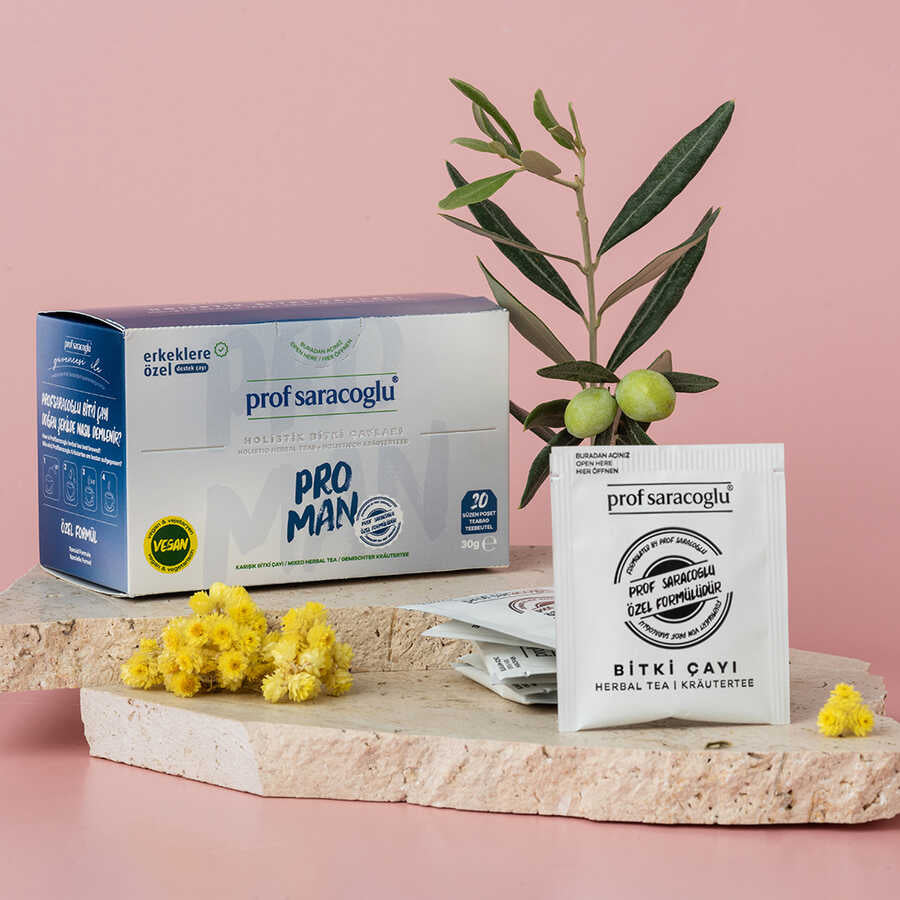 Prof Saracoglu Pro-Man, erkeklere özel hazırlanmış bitkisel karışım çayıdır. İçeriğinde bulunan ısırgan otu, kırkkilit otu, yakıotu ve zeytin yaprağı ile doğal bir bitki deneyimi sunar. Günlük kullanıma uygun pratik formu sayesinde, sağlıklı yaşam rutininize kolayca dahil edebilirsiniz.