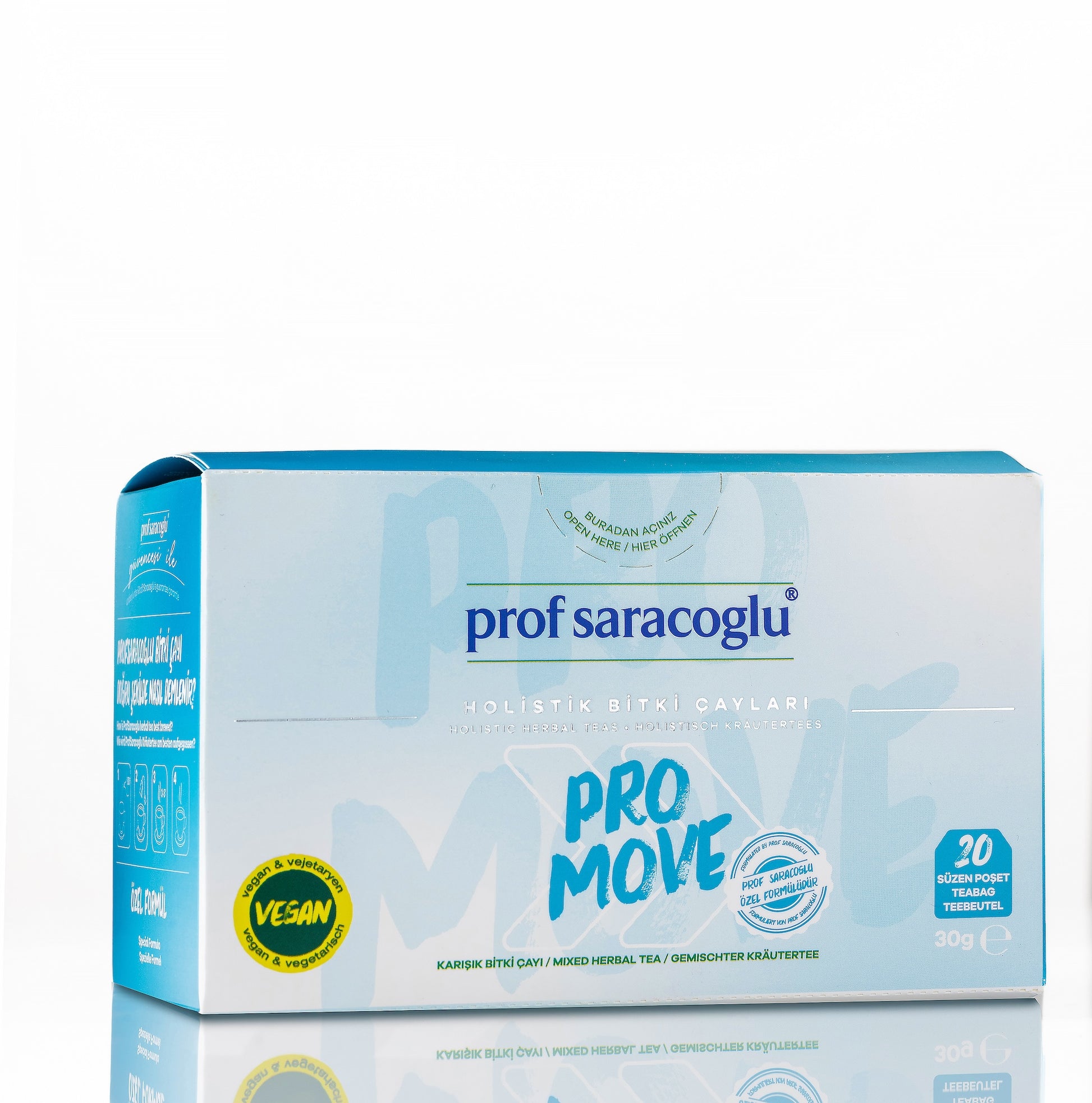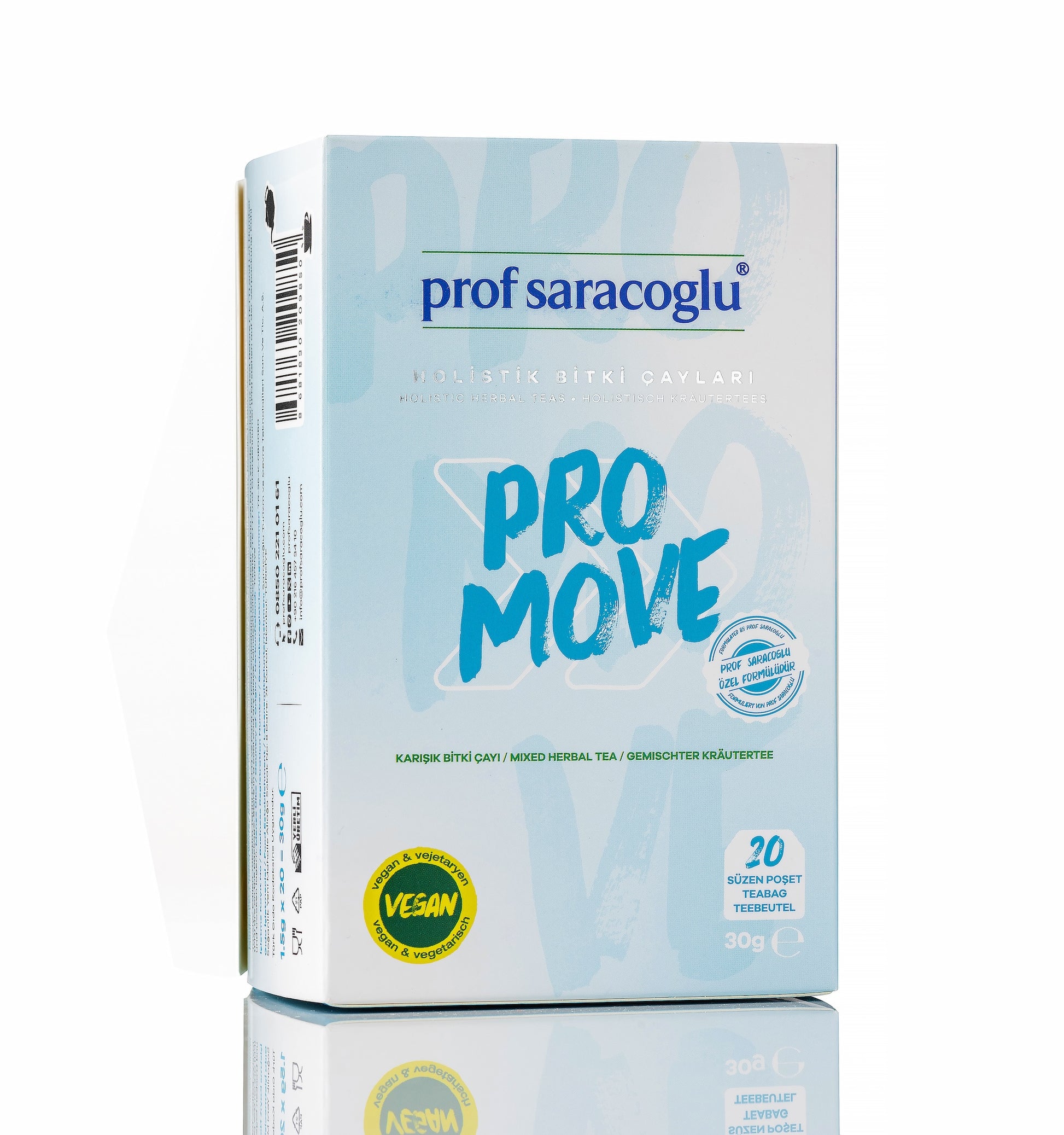 Prof. Dr. İbrahim Saraçoğlu’nun özenle geliştirdiği ve yılların bilgi birikimiyle yenilediği bu özel formül; Pro-Move 20'li Karışık Bitki Çayı, kullanım kolaylığı sağlayan yeni ambalajıyla bir araya getirilmiştir.